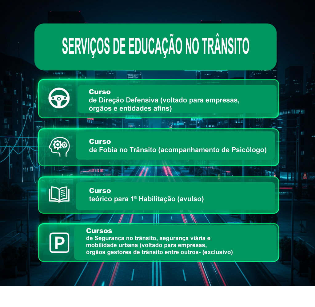 Cursos Especiais: Segurança e Mobilidade no TrânsitoNo cenário atual, a segurança no trânsito e a mobilidade urbana são temas essenciais para empresas, órgãos públicos e a sociedade em geral. Os Cursos Especiais oferecem soluções completas e personalizadas para capacitar motoristas, gestores e profissionais da área, promovendo um trânsito mais seguro e consciente.